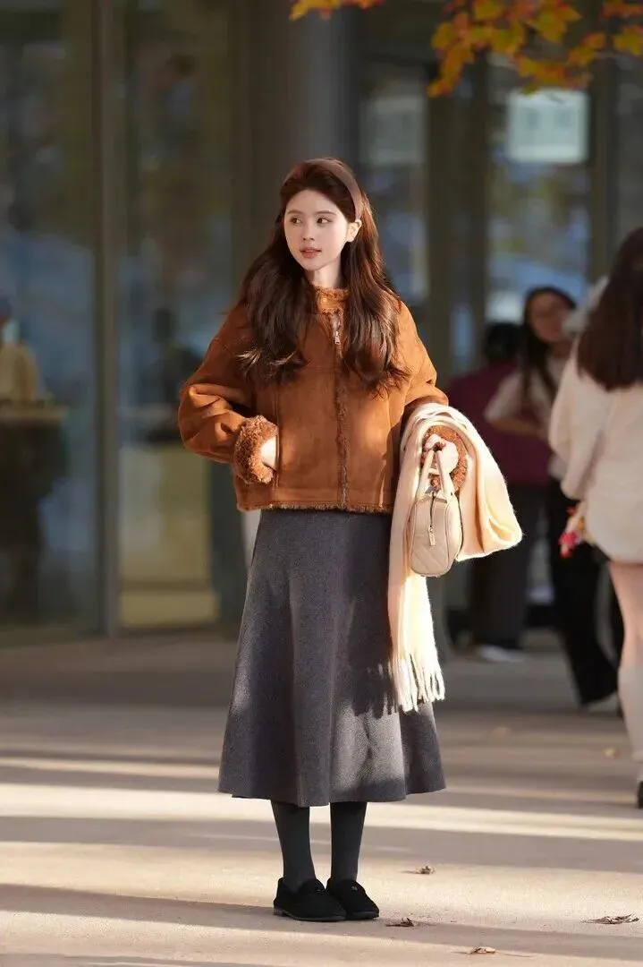 裙子长.度到大.腿中间最.显腿.长,外套选.宽松.一点的版型.,有种.随性.的感觉。不.管是上学.还是.上班穿都很.合适,让.人看起.来元气满满.
