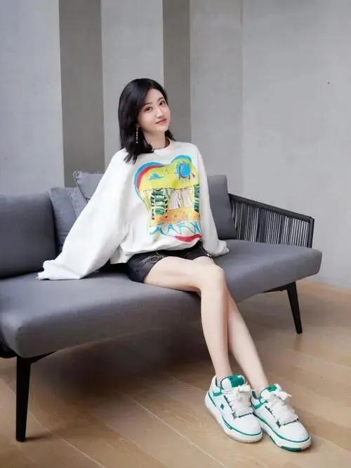 甜在选择牛仔单品时,注重剪裁和细节。她偏爱高腰设计的牛仔短裤和A字裙,既能拉长腿部线条,又能突出腰线,营造出“胸以下全是腿”的视觉效果。她还喜欢在裤脚或裙摆处加入磨毛设计,增添几分随性又不失精致的感觉。