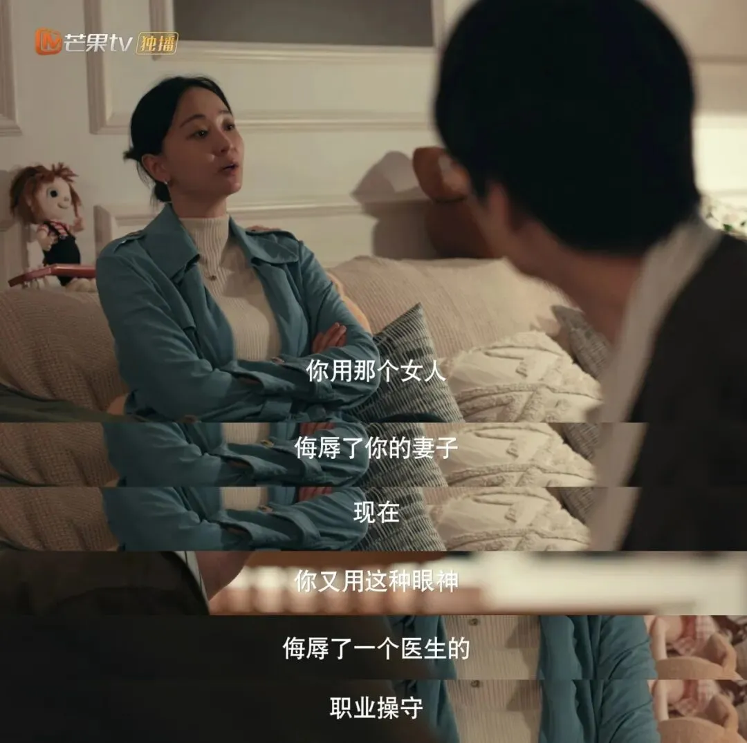 就像白雅晴对丈夫说的那句戳心台词:“你用这个眼神,侮辱了我的职业操守”。