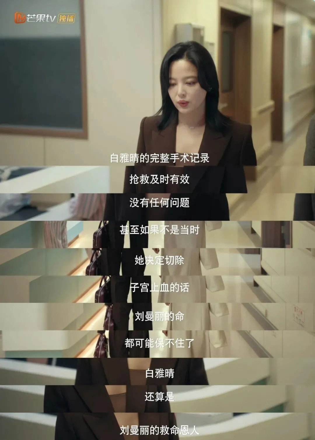 唯有律师唐盈盈,不管从最初的推理猜测,还是后来核查手术全程的证据,都得出白雅晴切除刘曼丽子宫的决策,专业无过错,无可指摘,不仅不是加害者,反而是刘曼丽的救命恩人。
