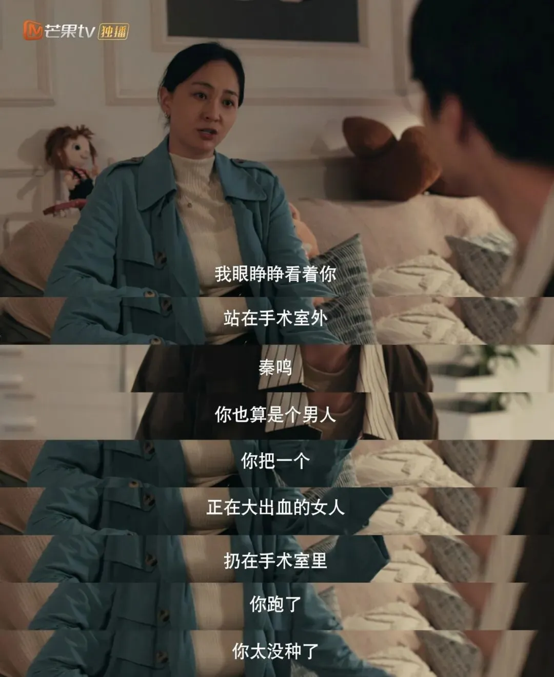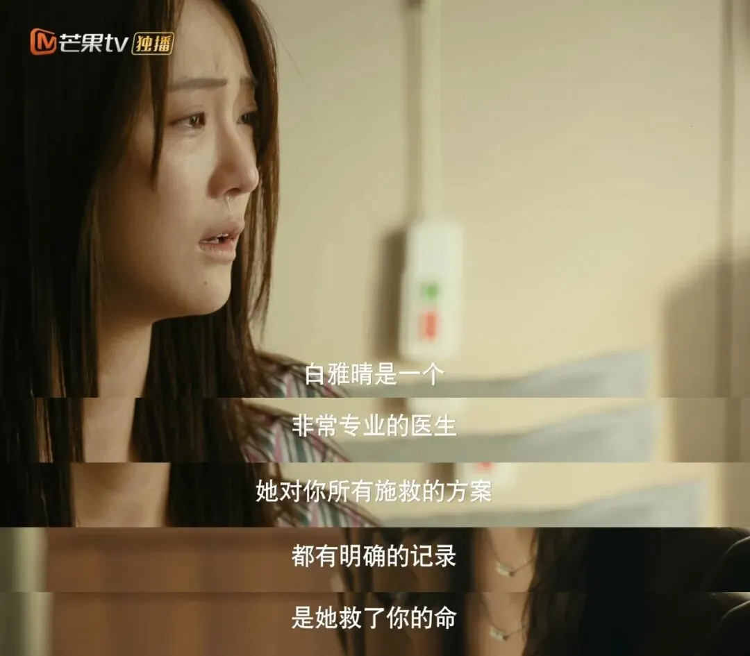 就连秦鸣被刘曼丽的哥哥敲诈勒索一千万而走投无路才与白雅晴坦白出轨并寻求帮助解决时,白雅晴才坦言急诊当晚便知晓一切,更不齿和痛斥不管是作为男人还是医生身份的秦鸣抛下大出血的女人逃跑,毫无担当。