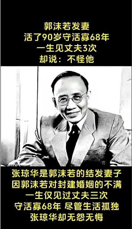 他初见张琼华便满心失望,婚后第五天便毅然离家赴成都求学,即便暑假回乡,也始终睡在厢房长凳上,绝不与她同房,用沉默反抗这场强加的缘分。而张琼华却恪守“嫁鸡随鸡”的礼教,在郭家默默坚守,孝敬公婆、打理家事,从未有过半分哀怨,一空守便是68年,直至1980年离世,终身未育,成了封建婚姻最无辜的牺牲品。郭沫若晚年还乡时,曾特意向这位守了他一生的女子深深鞠躬道歉,这份迟来的歉意,终究难抵半生的孤寂与遗憾。