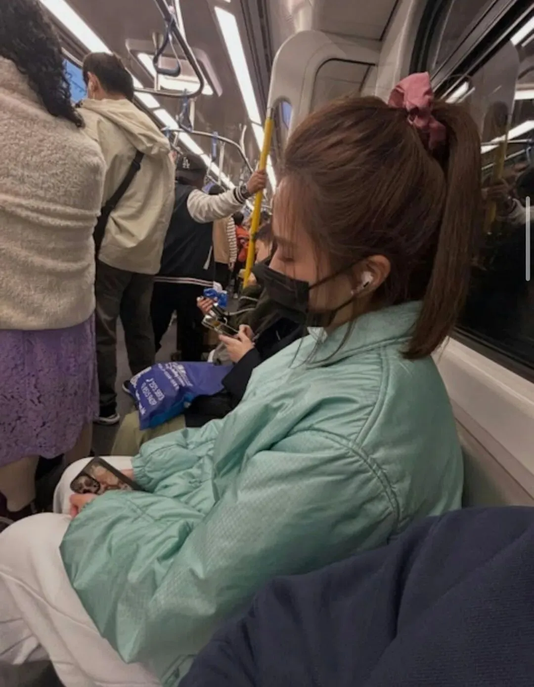 发帖人描述她一路瞌睡,多次险些靠到自己肩上,令其“心跳加速”,但强调自己“什么也没做”,只是近距离看到对方皮肤很好,便忍不住拍下照片上传至社交平台,分享这次偶遇。