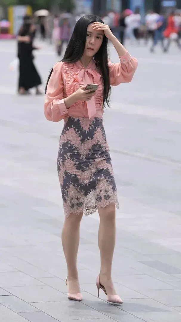 温柔姐姐穿搭指南:浅粉衬衫+蕾丝裙的完美公式,街拍吸睛全靠它!