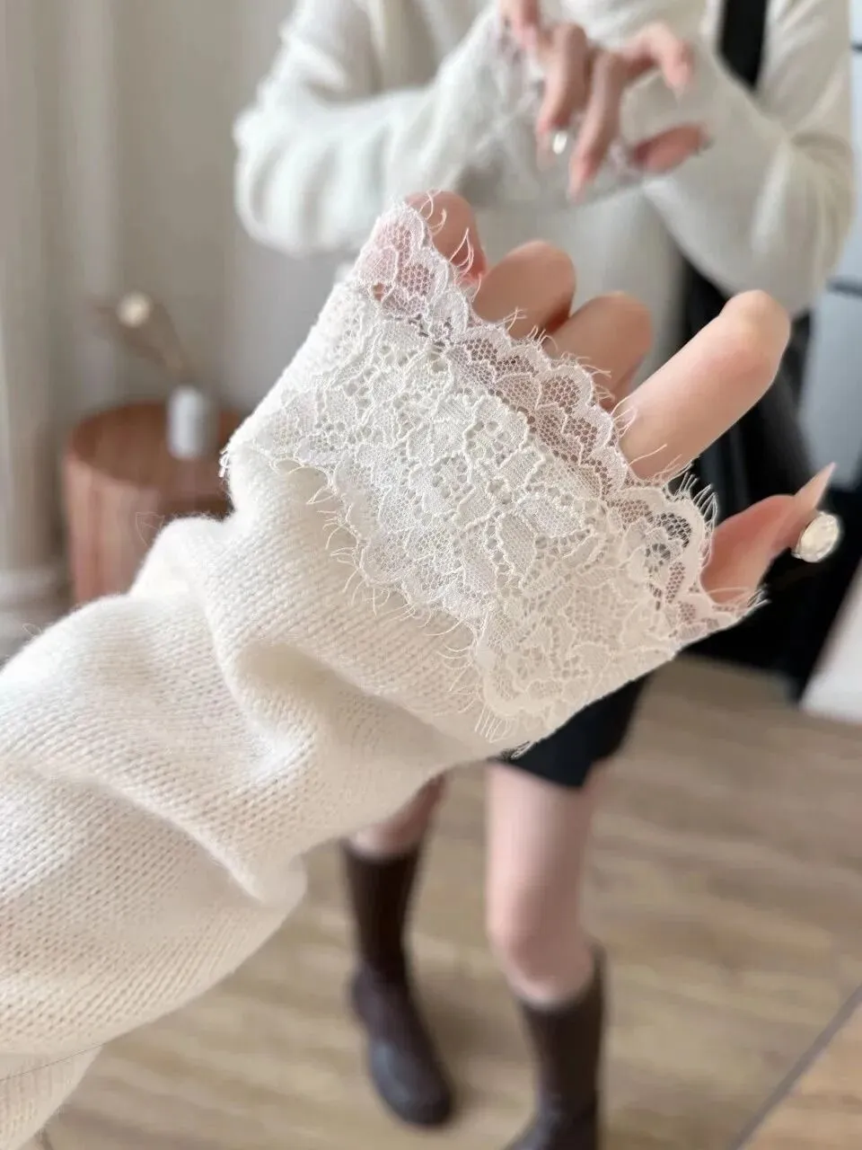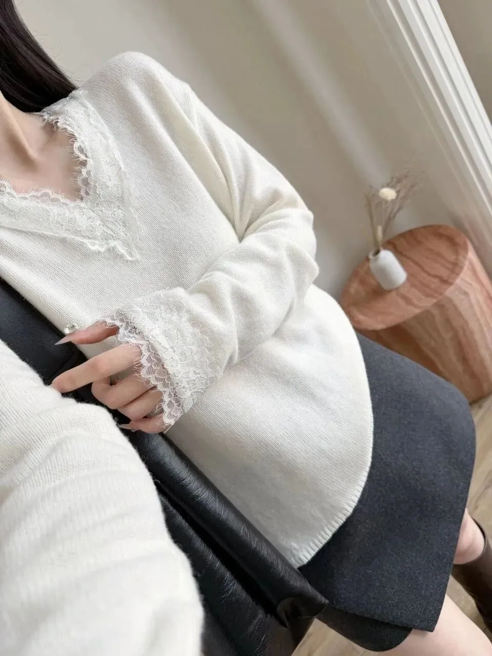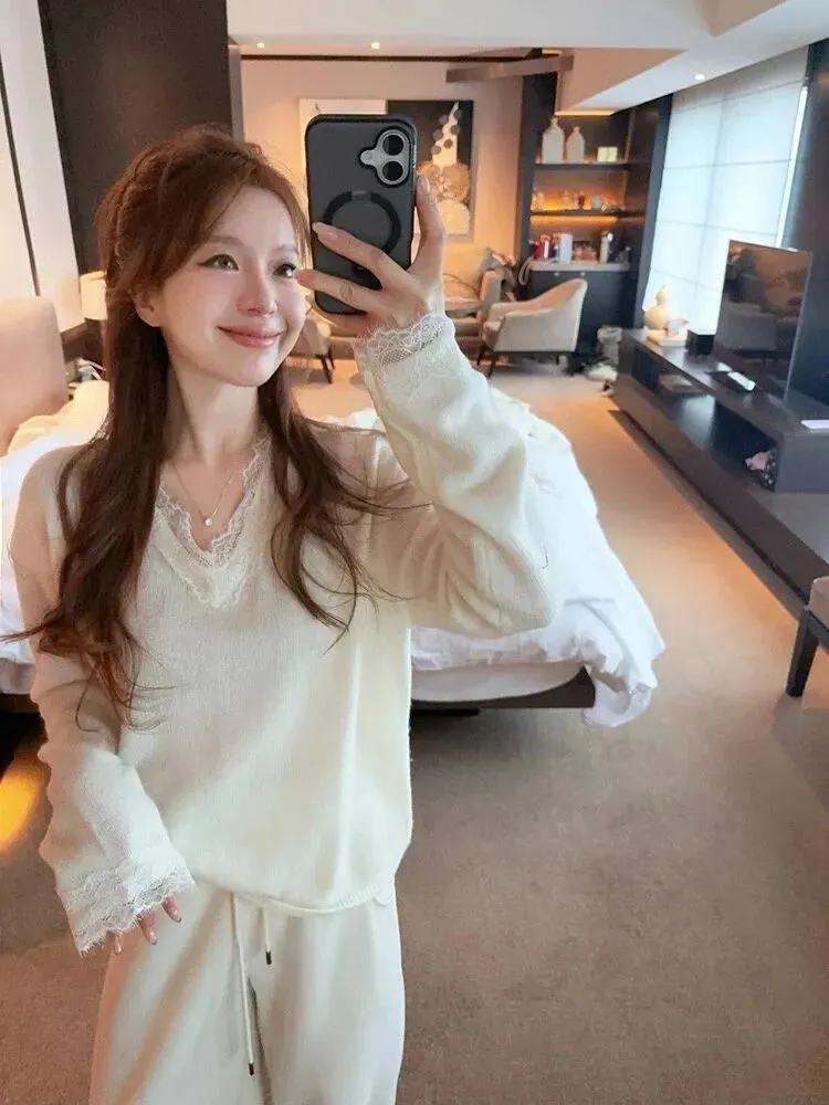 仙气迷人~新款高智感✨蕾丝拼接V领羊毛针织衫,专属于冬日的小精致,眼看上去美到挪不开眼