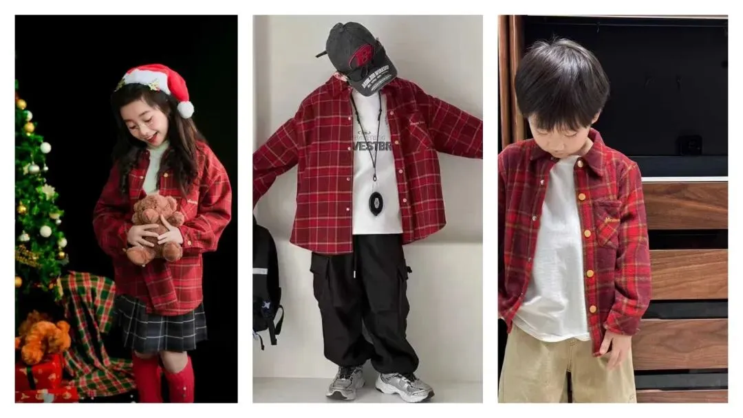 【正在团】青岛大厂!儿童色织红格纹磨毛衬衫外套