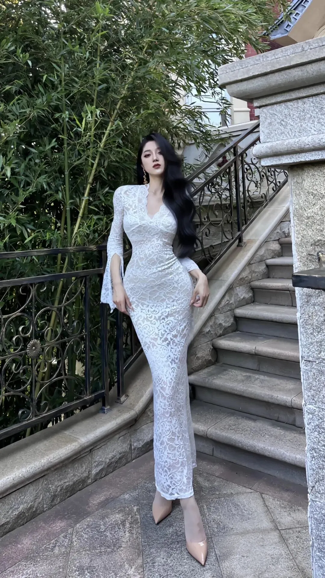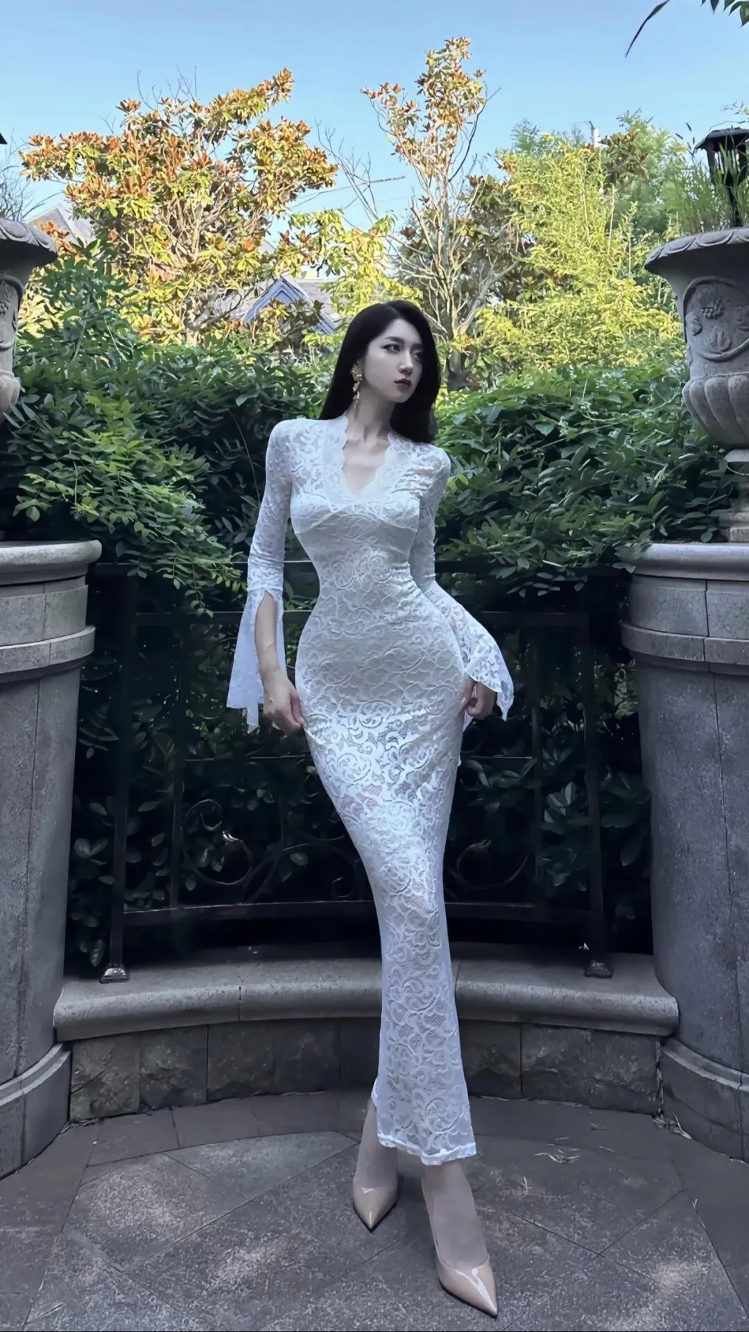当前位置:首页>美女资讯>白蕾丝鱼尾裙|复古优雅的氛围感穿搭