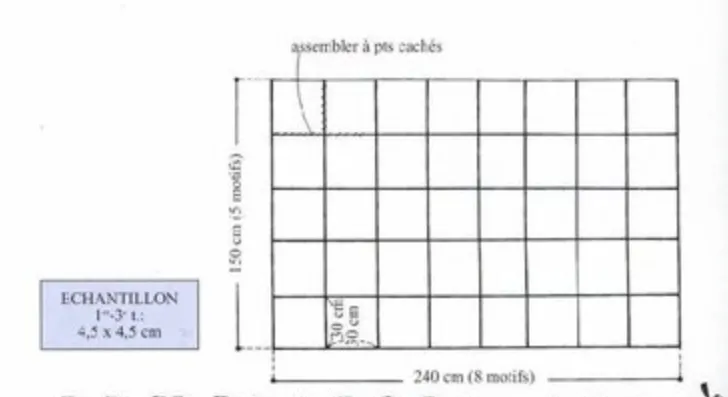密度样片:一个花片的前3圈 = 4.5 x 4.5 厘米;一个完整花片 = 30 x 30 厘米。