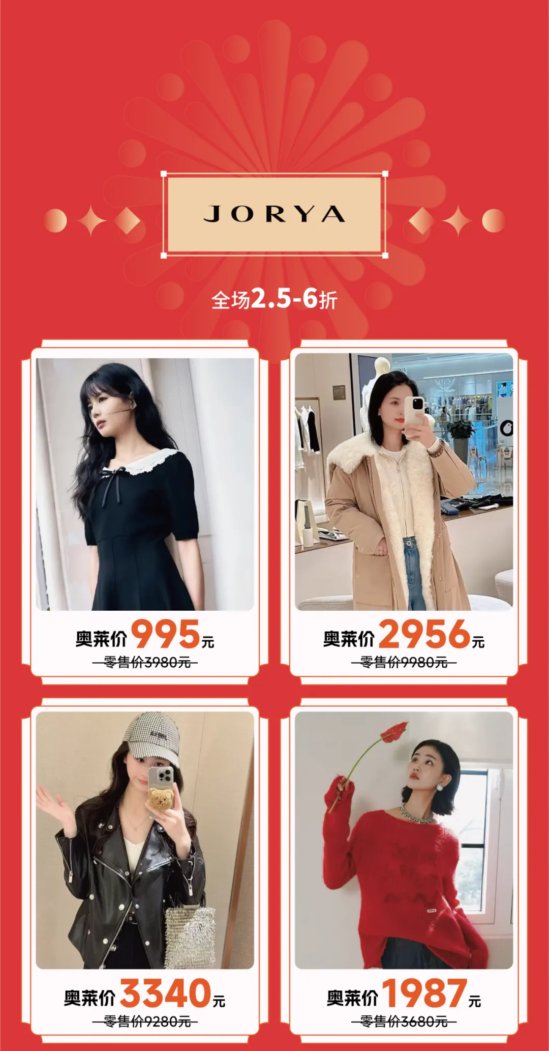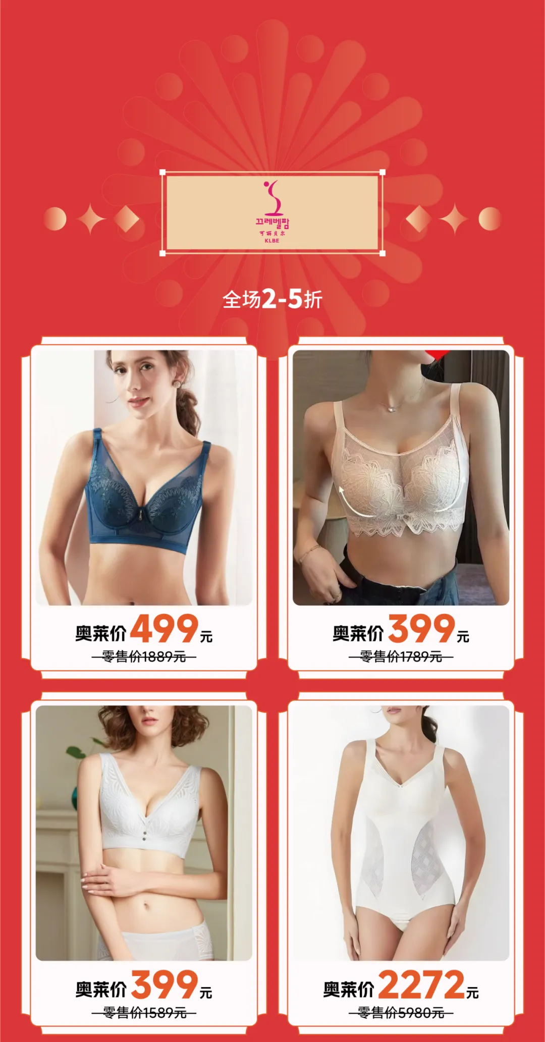当前位置:首页>美女资讯>新春焕新衣!金格奥莱店女神战袍低2折起,内衣套装199元起!