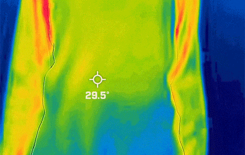 当然,热感仪测试也必不可少的:测试前手的温度是29.5℃,放手之后,手温瞬间升到了34.8℃!