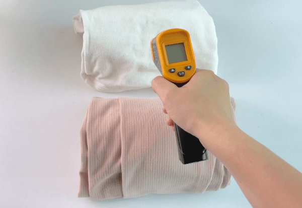 不夸张,我们直接拿测温仪来测测看,温度和普通保暖衣