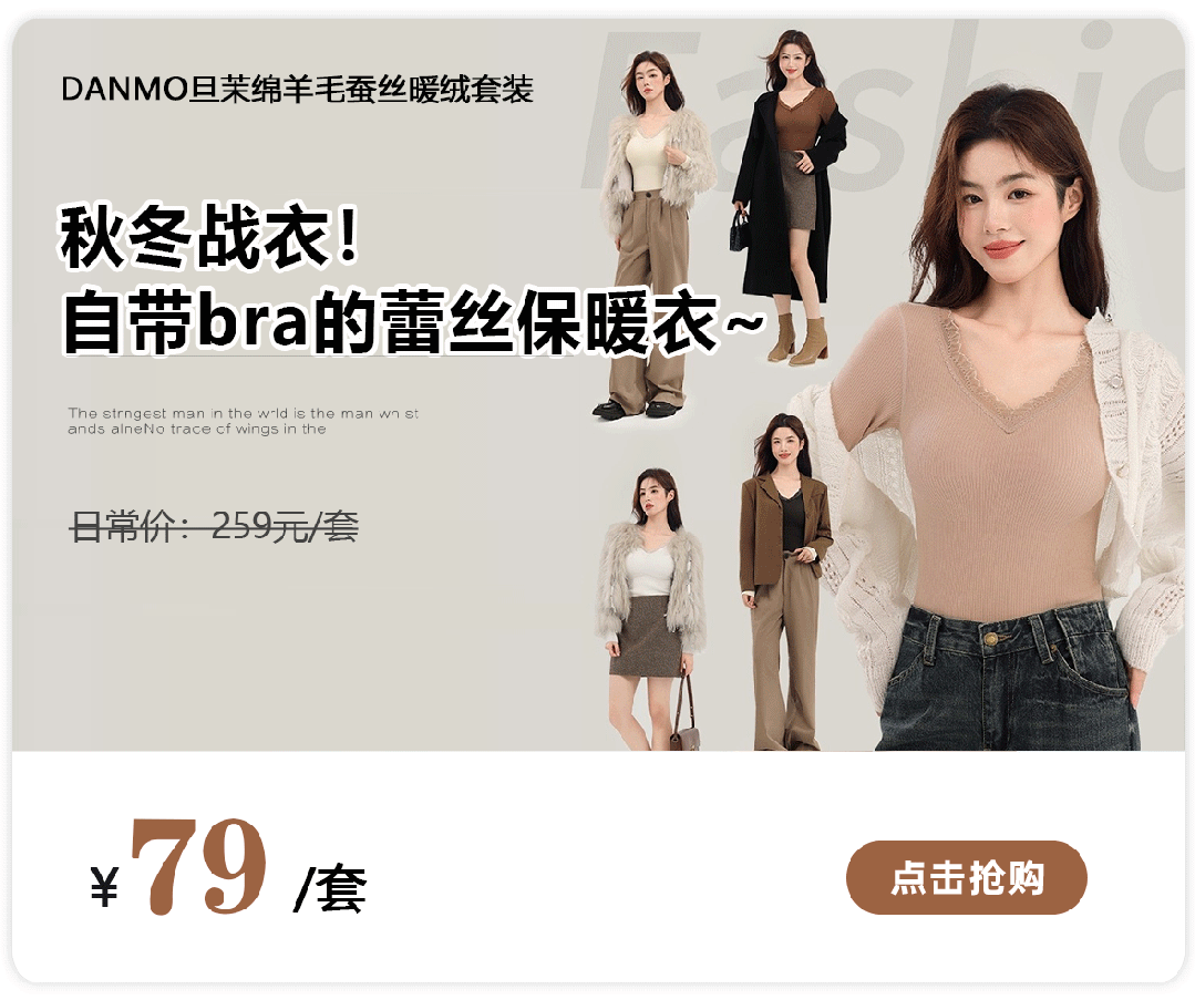 我们这款「绵羊毛蚕丝暖绒套装」原价159元/件起,今天狼粉开团到手: