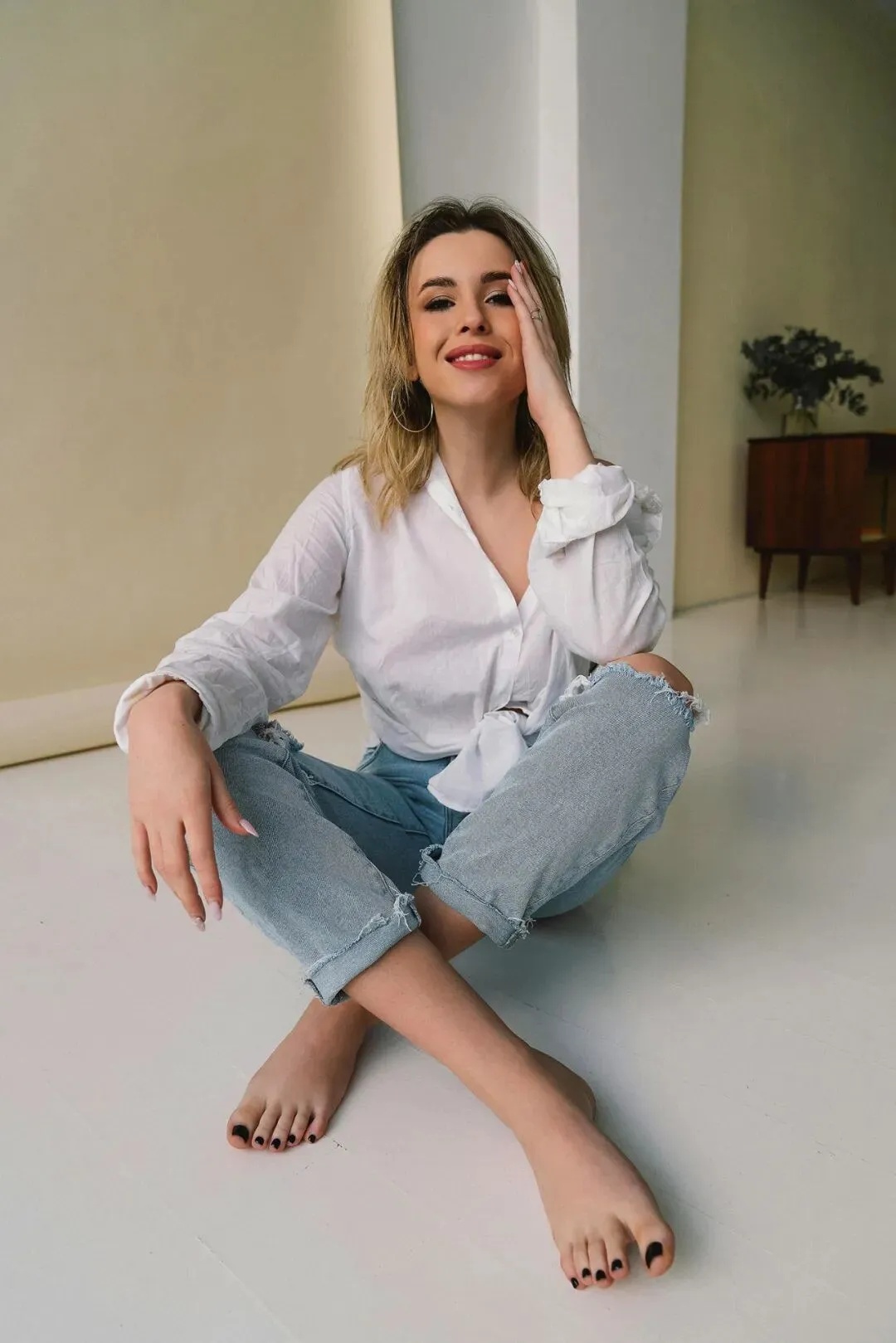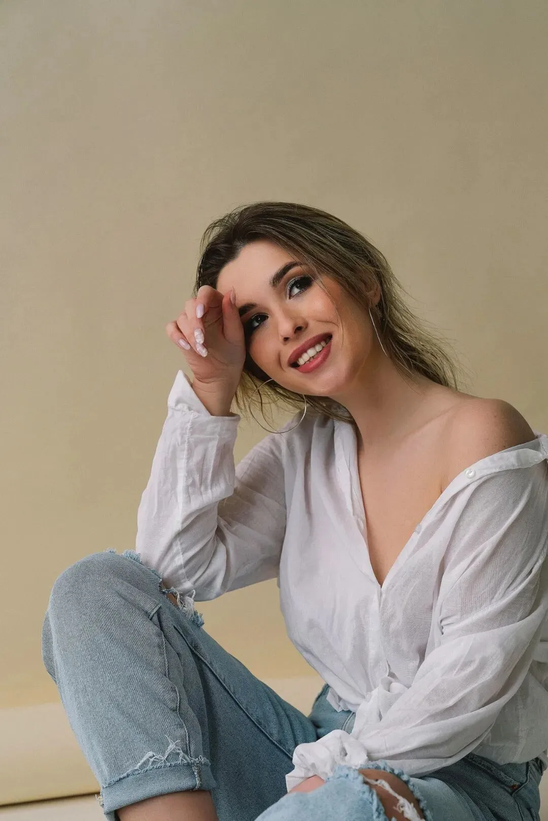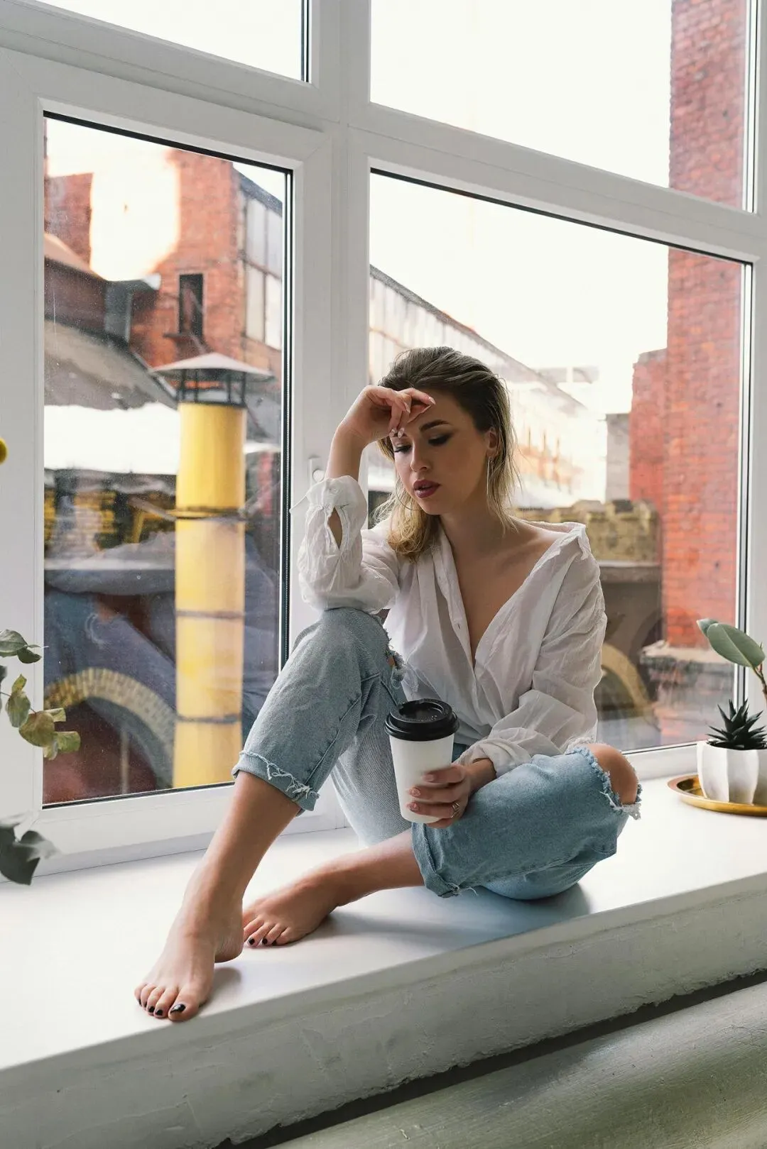 光线采用柔和的侧光,在人物轮廓与地面形成自然明暗过渡,弱化了阴影的尖锐感,进一步强化了松弛的基调。整体画面以低饱和色调为主,通过简约场景、随性穿搭与慵懒姿态的结合,打造出兼具高级感与生活感的视觉效果,契合当下流行的 “clean fit” 审美。