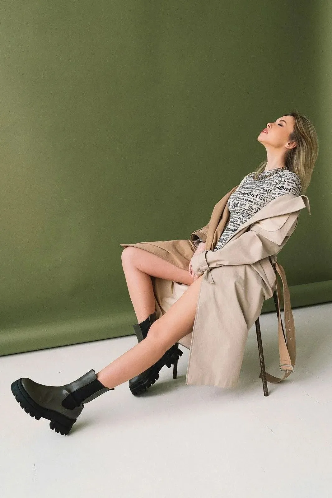 这组写真不追求锋利的完美,只捕捉松弛的瞬间 ——风衣半披的随性,印花贴身的张力,在低饱和色调里,揉成独属于她的高级感。不必用力证明什么,慵懒本身,就是一种气场。