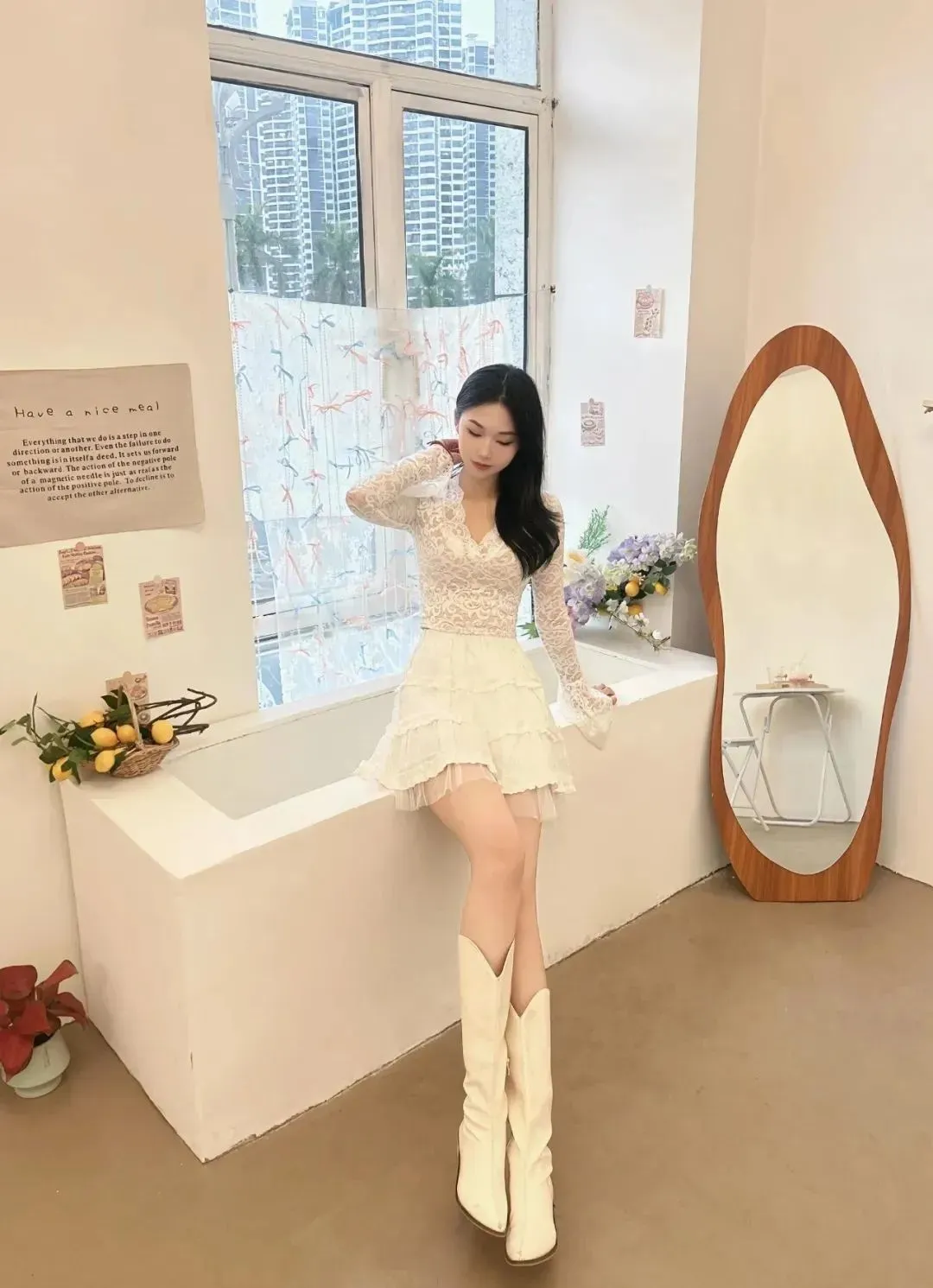 当前位置:首页>美女资讯>“蕾丝衫+小白裙+长靴”,精致甜美,藏不住的温柔气质