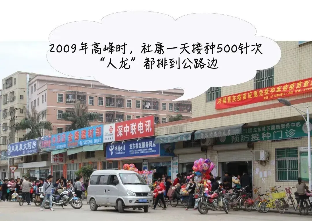 当时的龙东社区有6万多人,但因为社康没有开预防接种门诊,他们要跑到其他社区去给小孩打疫苗,很不方便。