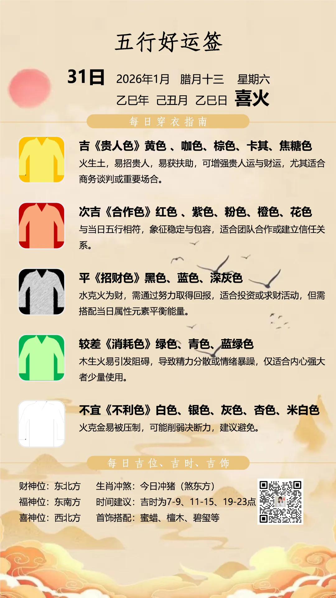 当前位置:首页>美女资讯>1月31日好运签(免费赠壁纸)|财富、桃花、事业、穿衣、吉时、首饰