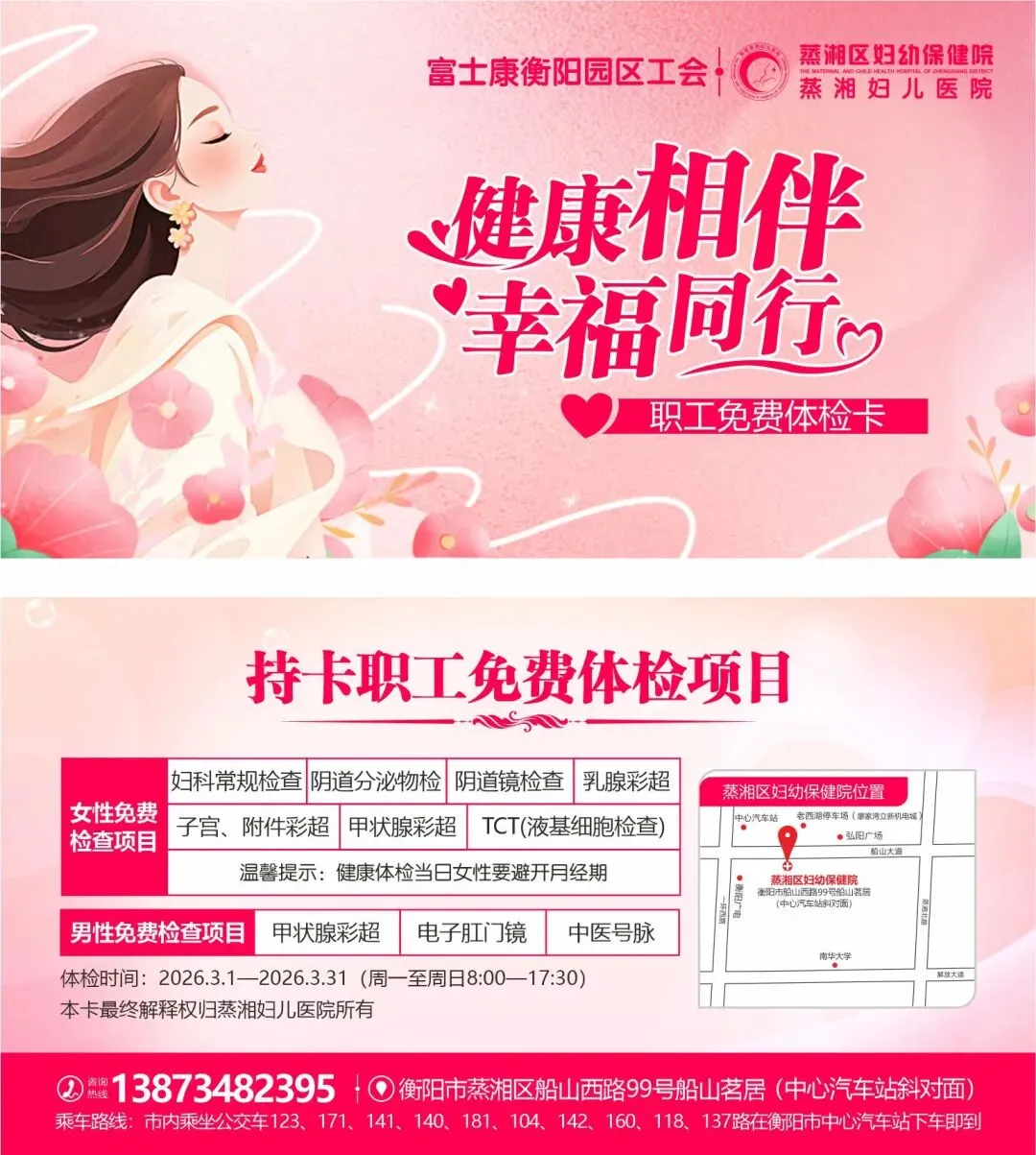 参与方式:按部门致园区工会领取免费体检卡,携带厂牌自行前往合作单位进行体检(满15人同时前往可安排车辆接送)