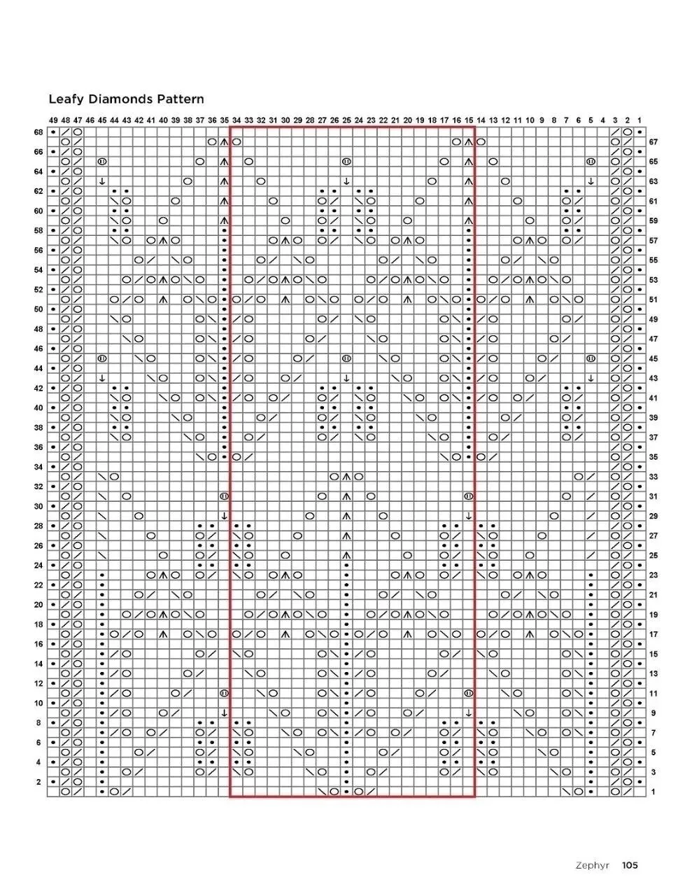 编织说明织物片(编织两片相同的)使用长尾起针法及较粗的针,起69针。编织一行上针。换用较细的针。编织扇形图案第1-10行一次。编织柱形图案第1-10行一次。再编织柱形图案第9-10行九次。总共编织叶状菱形图案第1-68行三次。编织一行下针。将针目移至废线或针目固定器上。