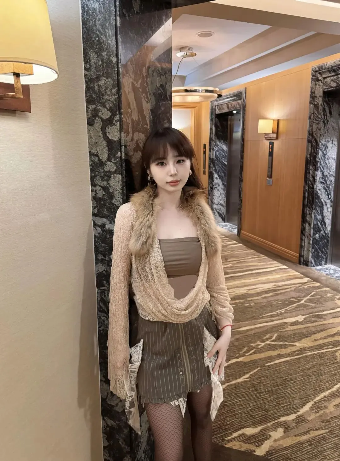 当前位置:首页>美女资讯>“裸色吊带+蕾丝披肩+纹理厚黑”,这一套真的慵懒又有气场,走廊随手一拍都绝了!
