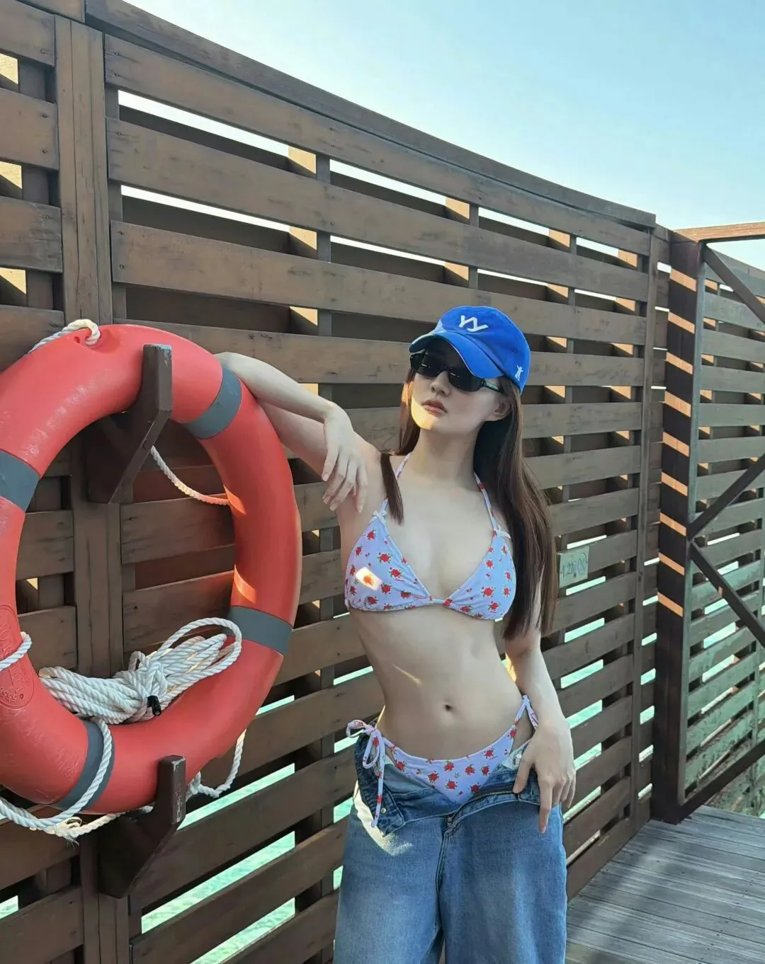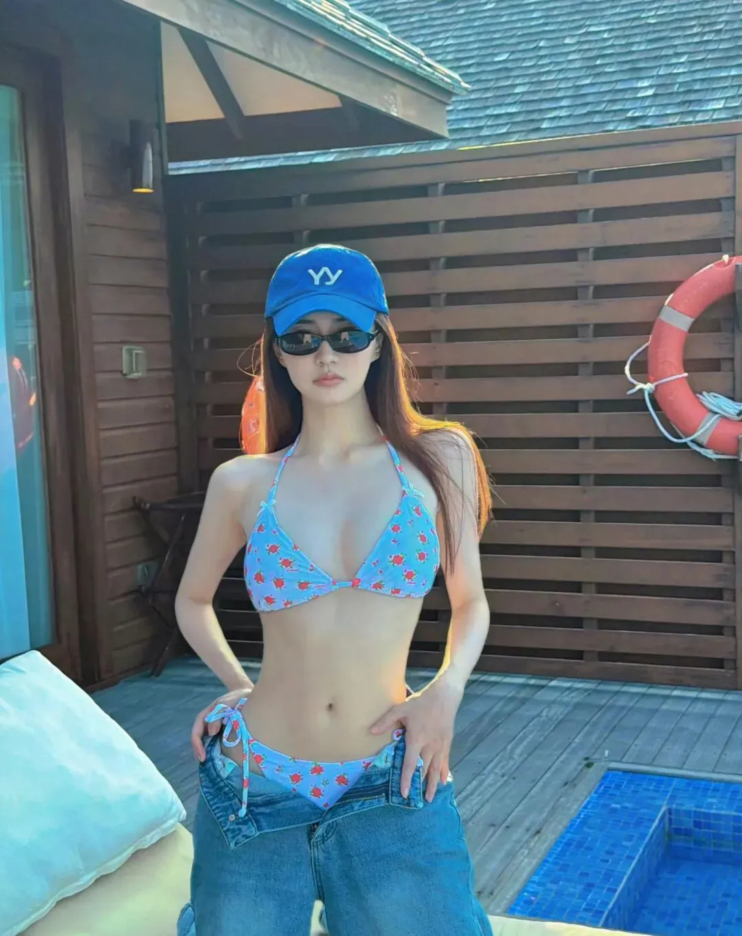这组写真的造型巧思,藏在每一个细节里。徐璐身着草莓图案的比基尼,干净的底色搭配鲜活的红色草莓点缀,少女感扑面而来,仿佛将一整片清甜的草莓园穿在了身上。比基尼的剪裁恰到好处,贴合身形的同时勾勒出纤细的腰肢与流畅的肩颈线条,性感却不张扬,分寸感拿捏得十分到位。她又在比基尼外搭了一条浅色修身牛仔裤,微微卷起的裤脚露出纤细脚踝,随性的牛仔风中和了比基尼的柔美,甜辣交织的度假风格瞬间拉满。