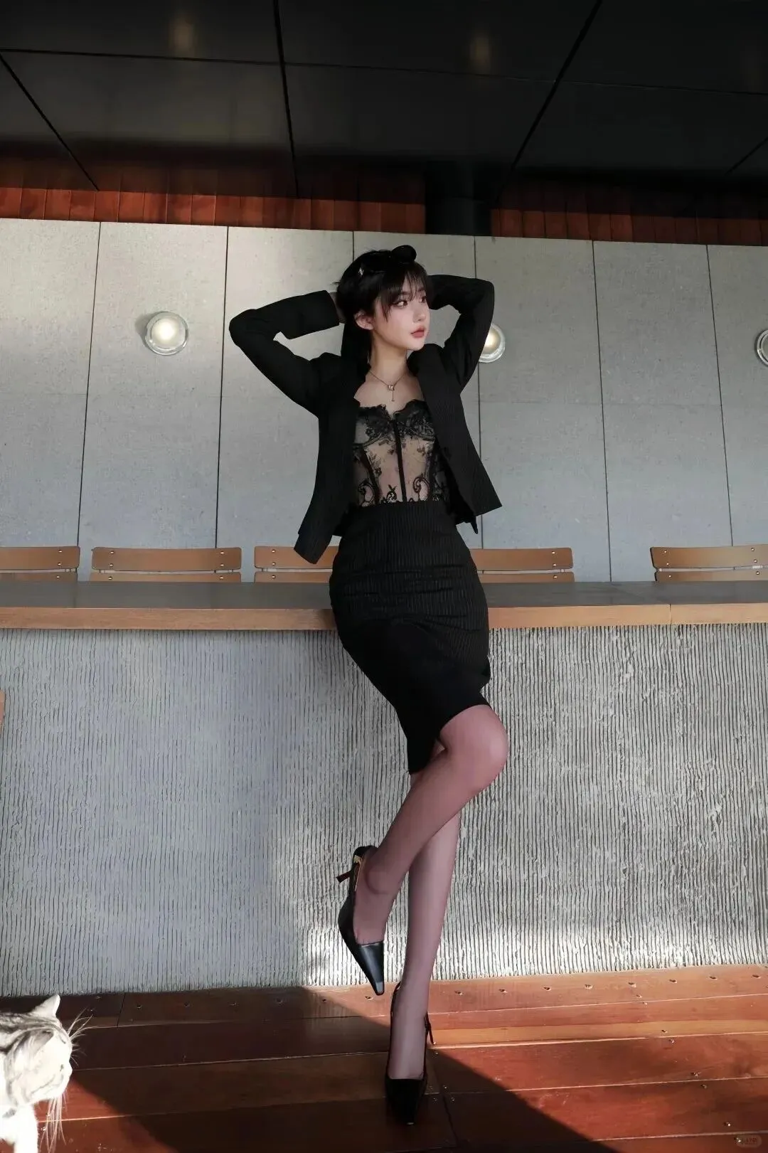 当前位置:首页>美女资讯>黑西装与蕾丝,解锁职场性感新范式