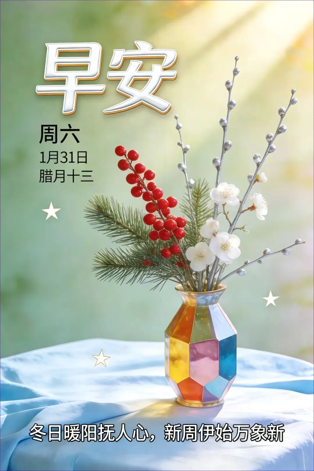 当前位置:首页>美女资讯>1月31日 周六早上好祝福图片 周六早上好祝福语图片最新的 周六早上好祝福语