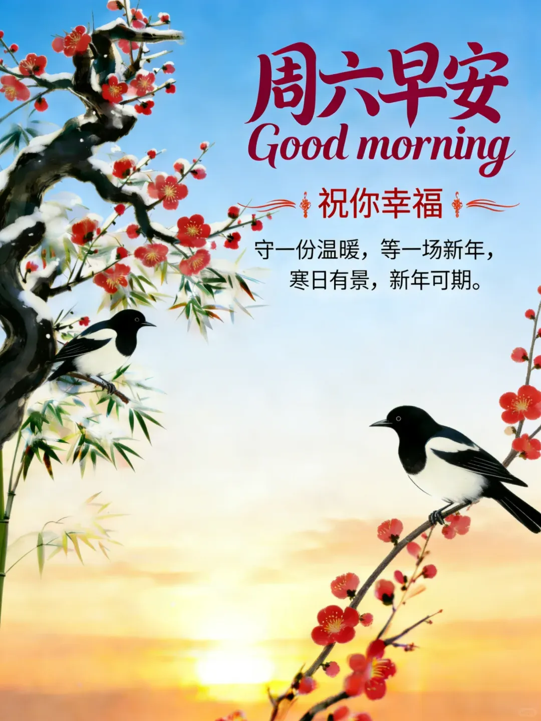 梅花在枝头睁开眼,举着雪做的小灯。枝桠挑着薄雾,花瓣裹着蜜香,风里飘着清浅的笑——早安,一月的花,把寒冷酿成了香,给你递来春天的信。
