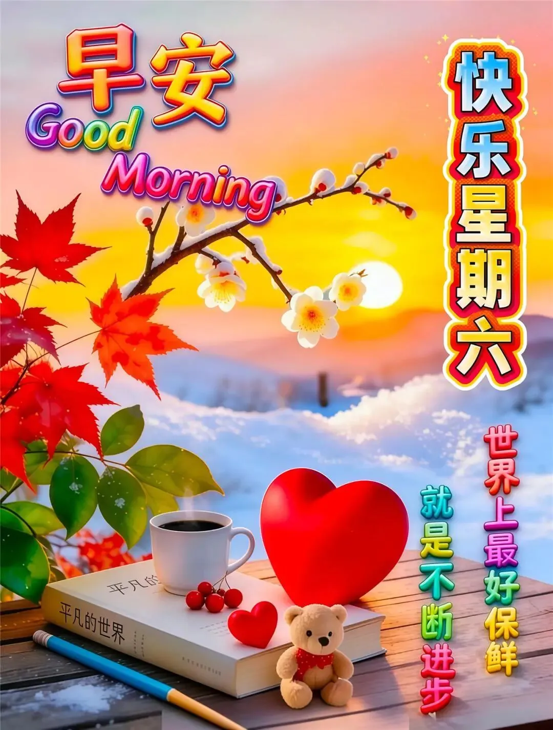 暖炉伸着懒腰,木柴噼啪唱着歌。茶烟绕着圈轻轻跳,手背贴着它的热,心里的寒都跑了——早安,一月的暖炉,像小太阳落在家里,捂热所有的凉。雪给大地盖了层白绒毯,屋顶戴着白帽,树枝穿着银衫,路面铺着糖霜。风裹着雪粒轻轻跑,像孩子撒着欢——早安,一月的雪,把世界变成童话,等你踩出第一行脚印。