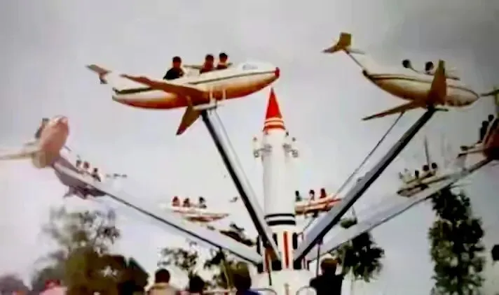 劳动公园游乐场内的旋转飞机