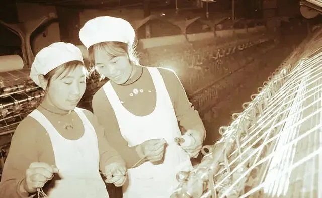 洮安毛纺织厂工人王哲莹(左)张岩(袁兆义摄)