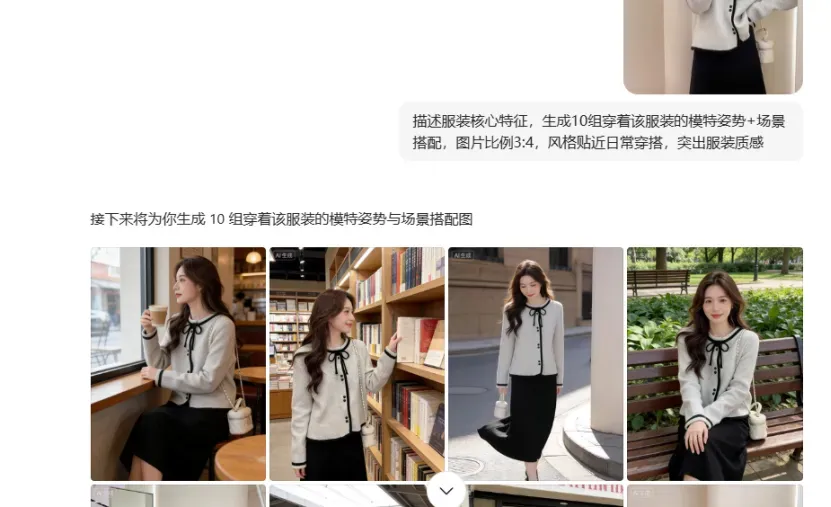 2. 打开豆包AI,用我的“咒语”,生成一组穿搭图。