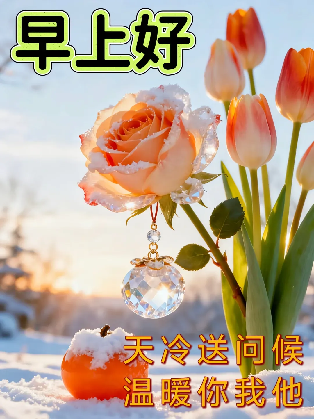 冬季到来天转寒,真情牵挂不曾断,霜风扑面凉飕飕,一句问候暖心头,加添衣衫多保重,开心健康度冬闲。早安!