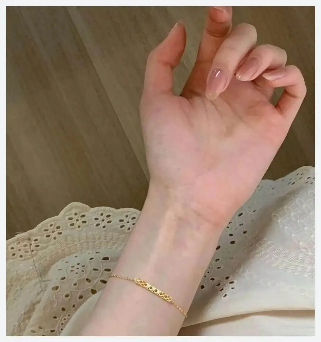 我先把话放这:这条就是“素人也能戴出氛围感”的小金饰。上班戴完全不突兀,聚会约会又会突然变得很抓眼。 我最近通勤基本是素色衬衫配长裤,妆也偏日常,整个人容易显得太利索、太“干脆”。没想到加上它之后,气质像被软化了一截——就像在很拼的日子里,手腕上悄悄给自己留了一个浪漫的缝隙。