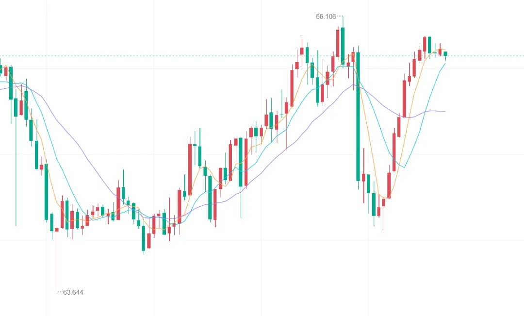 2、建议在65.1-65.3美金附近做多,止损0.3个点,目标看66.3-67.9美元附近即可;
