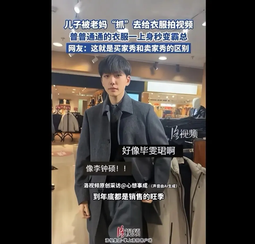 当前位置:首页>美女资讯>1米86小伙被妈妈“抓来”当中老年装模特,带火21年老店,妈妈发声:自家卖男装,儿子暂无女友