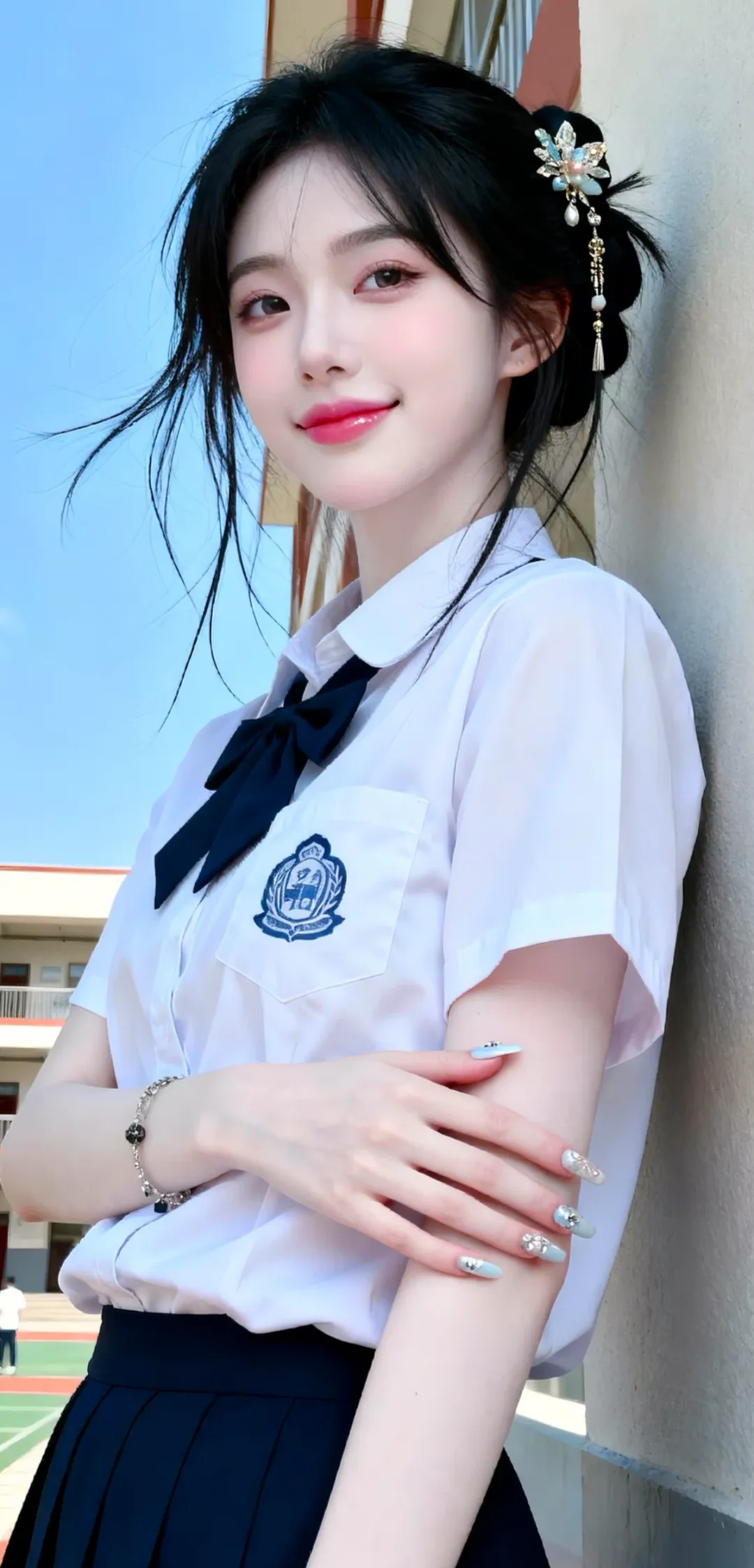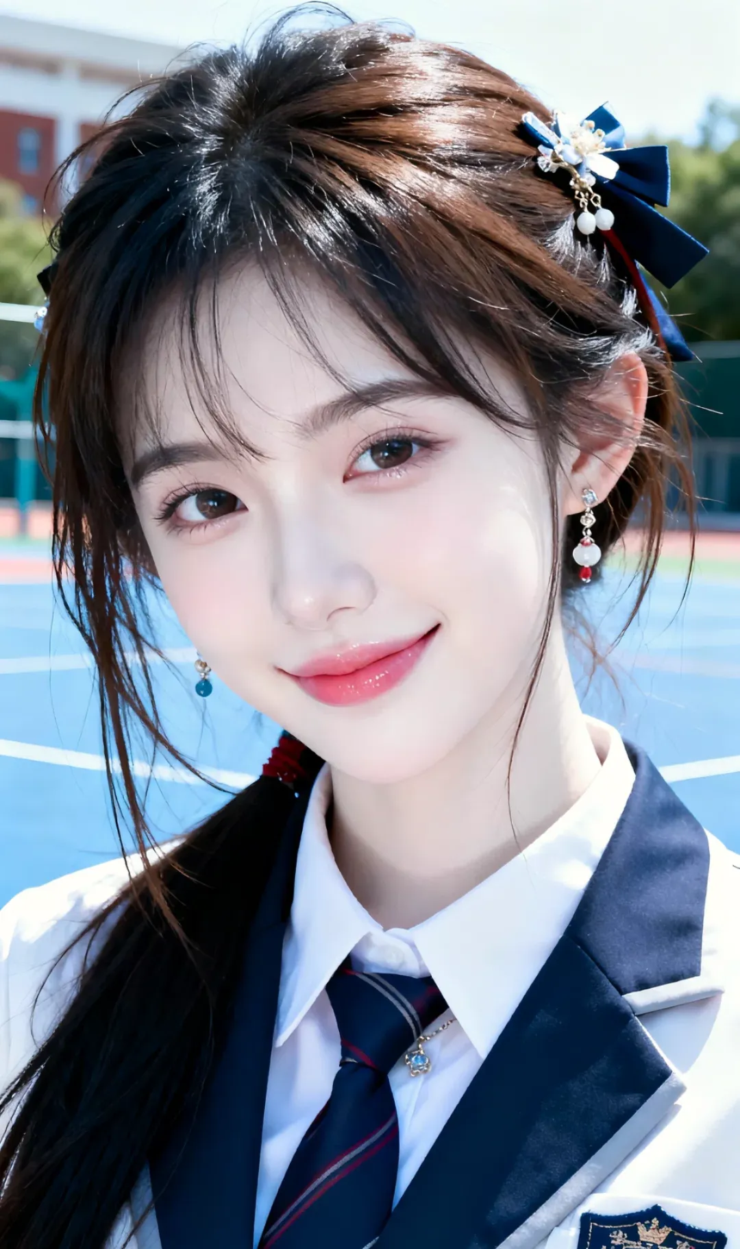 AI绘画,青春元气的校园风女神