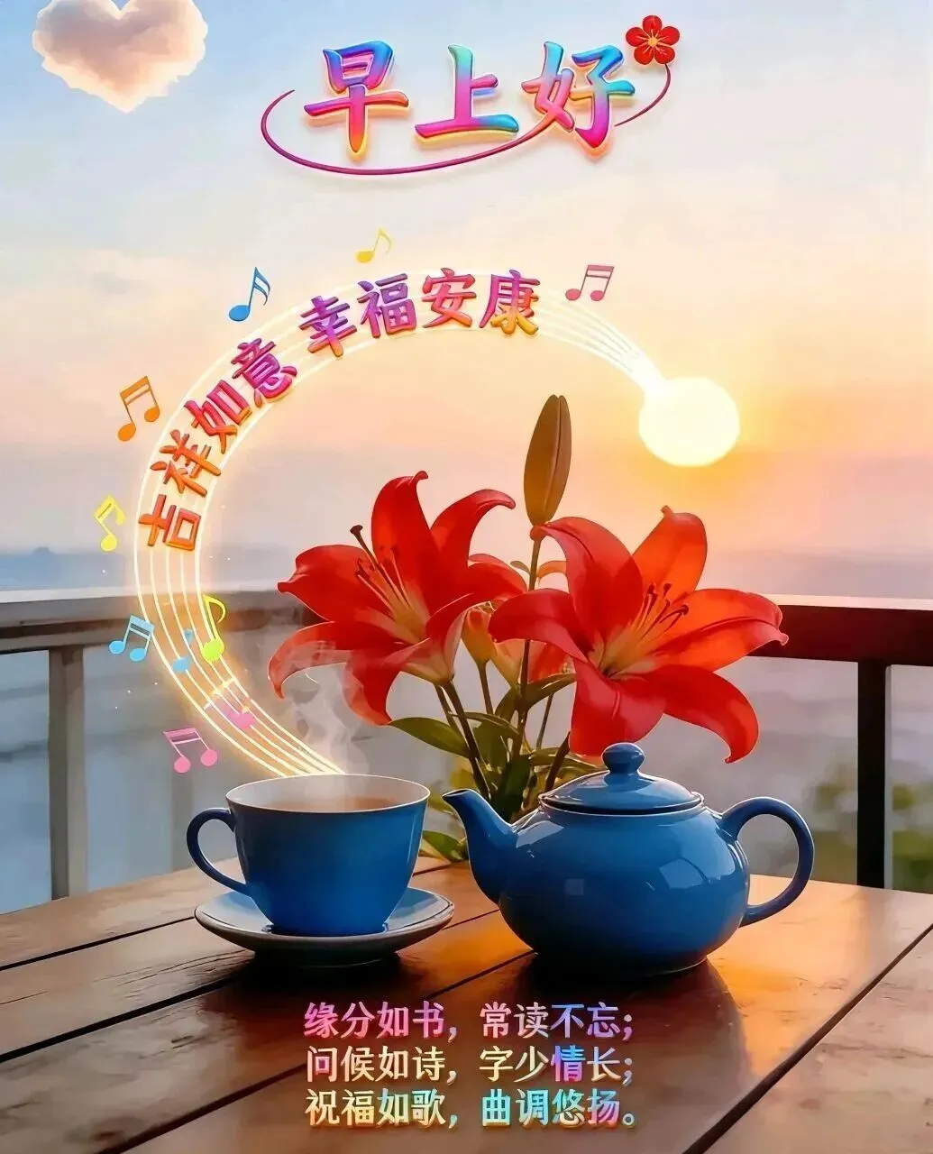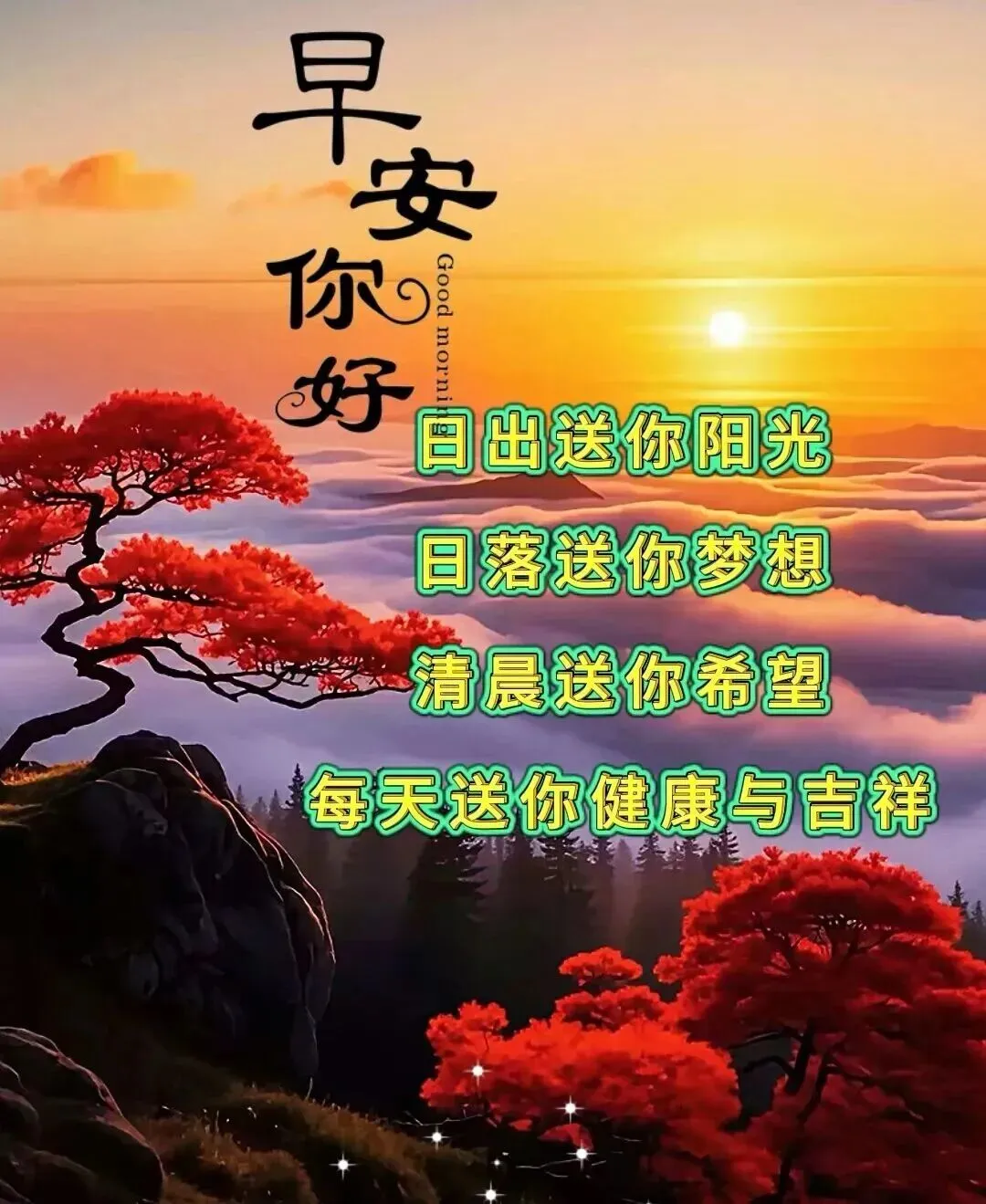 清晨的第一缕阳光亮起 我的晨安祝福就抵达了朋友们的身旁 我希望他们能在新的一天里展开美好的画卷 幸福始终相伴 就像我有次早上给朋友发去祝福 他后来告诉我 那天他特别顺利 工作也特别有干劲 我希望朋友们每天都能健康快乐多收获 成功路上步步为赢