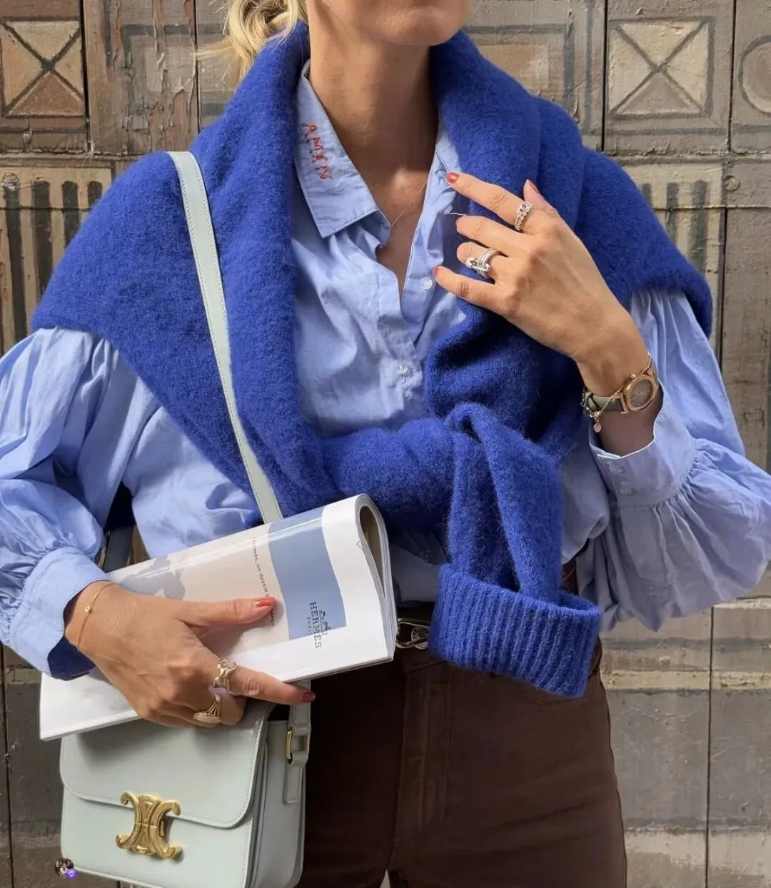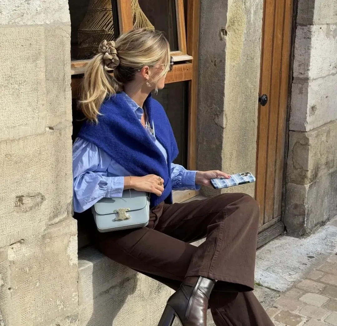 看到这个图片觉得配色很好看,都说蓝棕配色是秋冬复古天花板,但模特穿和普通人穿,真的是一回事吗?