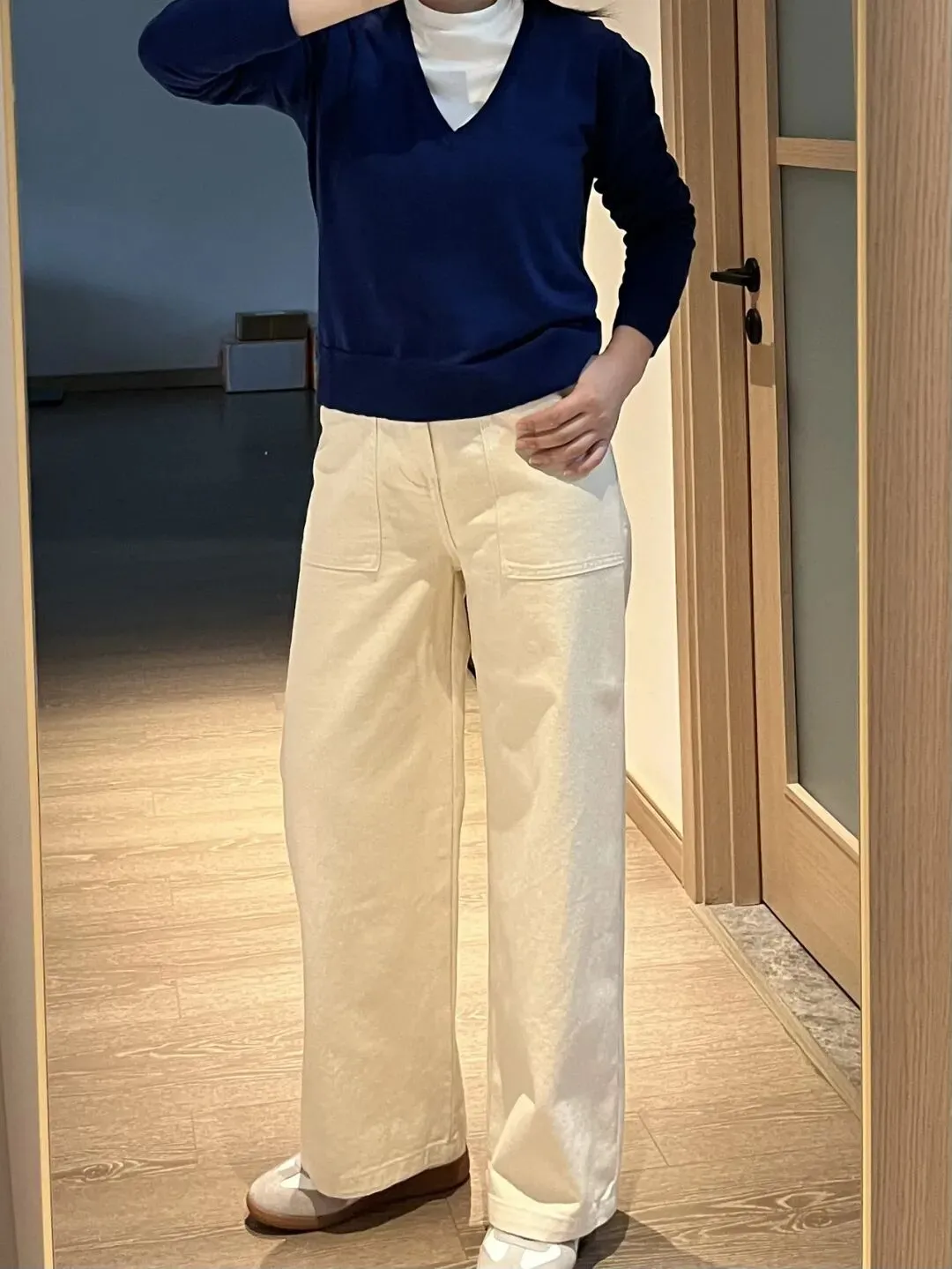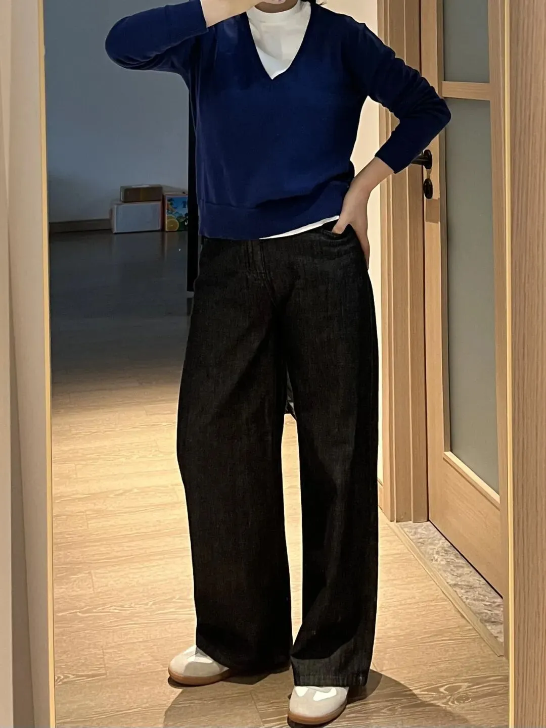 今天是想分享入的一件蓝色V领针织衫的穿搭,对各种彩色无法抗拒,每每看到都会想要入手,年纪越大越喜欢