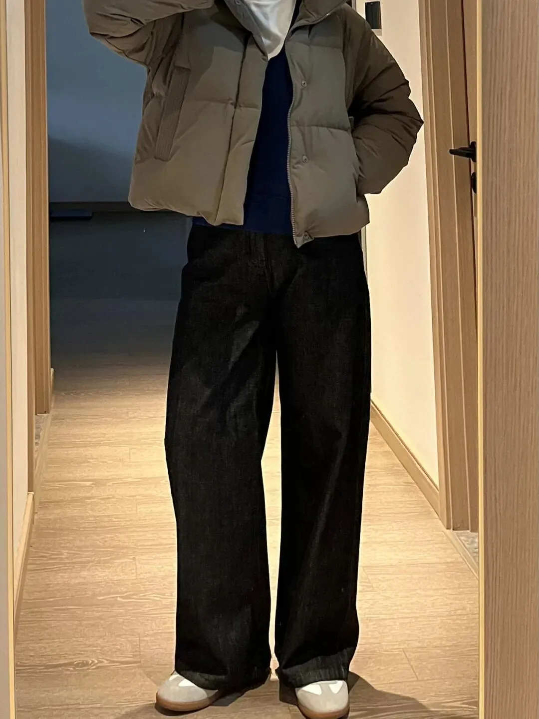 黑色能收缩视觉,特别适合搭配稍宽松的毛衣,整体是很利落的感觉