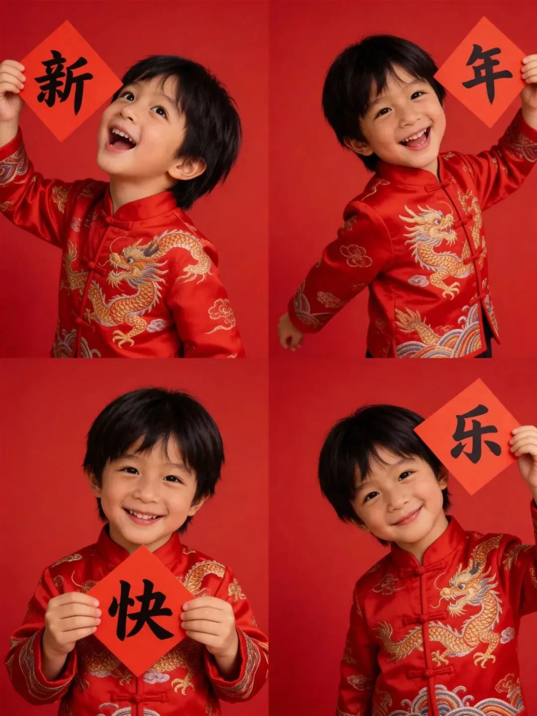 当然啦,新年晒娃不能只发一种风格的照片,除了最火的“新年快乐”四宫格,复古民国风、喜庆中国风、俏皮童趣风的写真也不能少。直接抄作业就行,用AI做一整套新年萌娃写真,步骤超简单:上传娃的照片,输入不同风格的提示词,剩下的交给AI,5分钟就能生成刷爆朋友圈的大片!