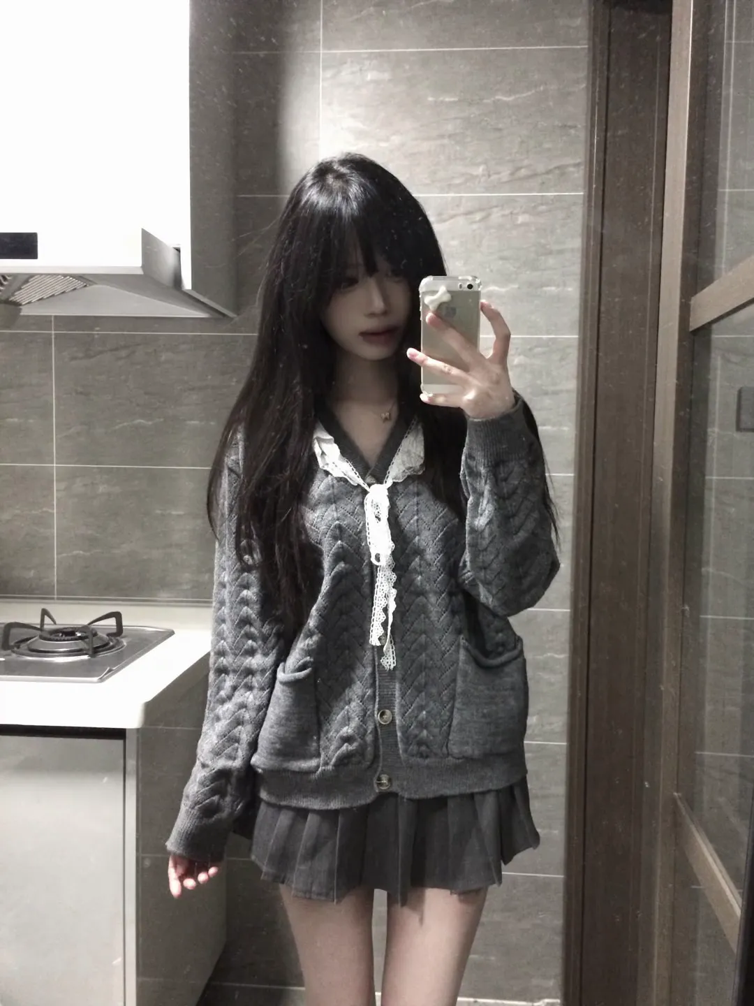 当前位置:首页>美女资讯>灰蕾丝针织衫搭百褶裙,甜乖度几分?