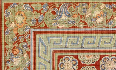 回形纹属于中国传统图案八祥之一,因形如“回”字而得名,图案呈圆弧形卷曲或方折的回旋线条。