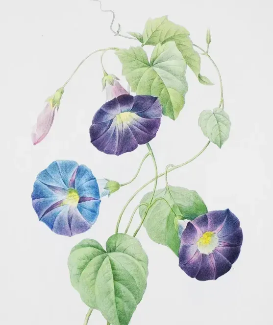 朝颜花朵简约,清丽脱俗寓意,迎着朝霞,积极向上。