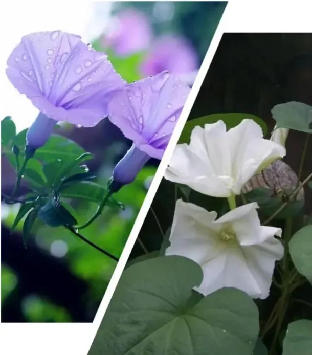 朝颜花俗称牵牛花、喇叭花, 花色清新淡雅,朝颜花清晨花,傍晚花谢,花期短一般只开一到两天。