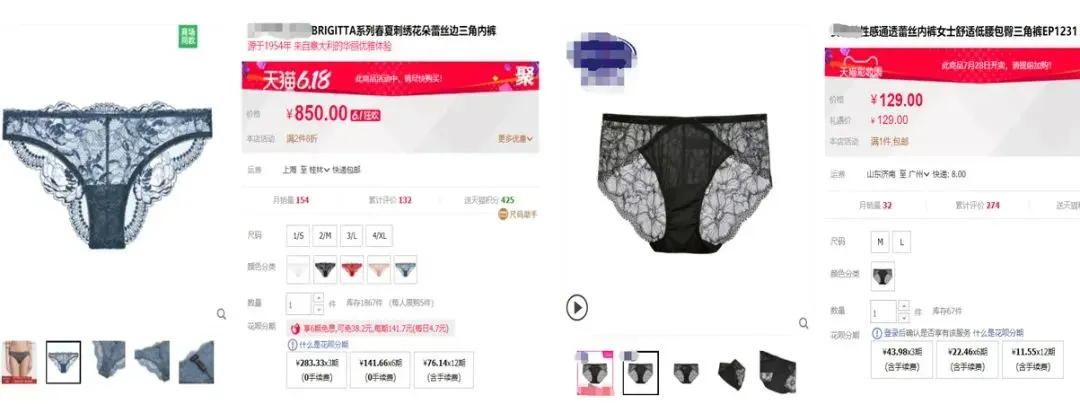 左:普通蕾丝内裤                 右:菲则蕾丝内裤