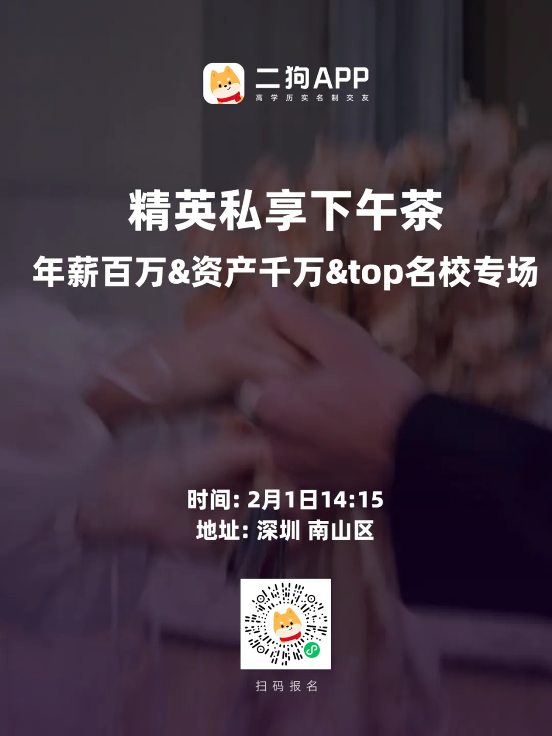 1、二狗APP或二狗小程序身份,工作,学历3证认证的单身用户