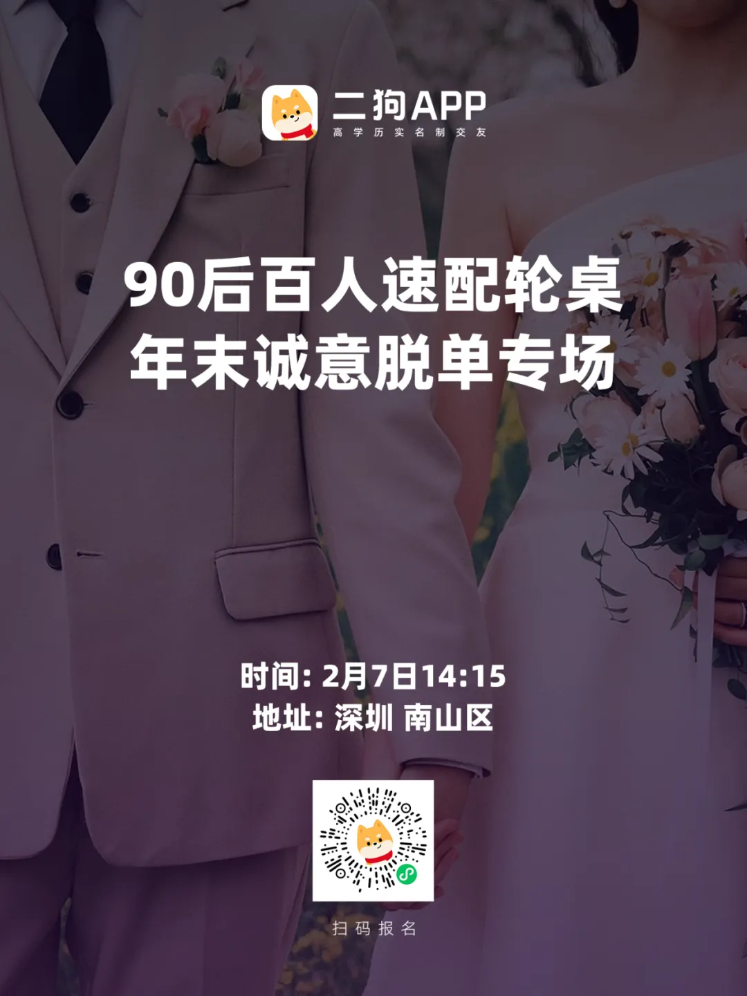 1、二狗APP或二狗小程序身份,工作,学历3证认证的单身用户