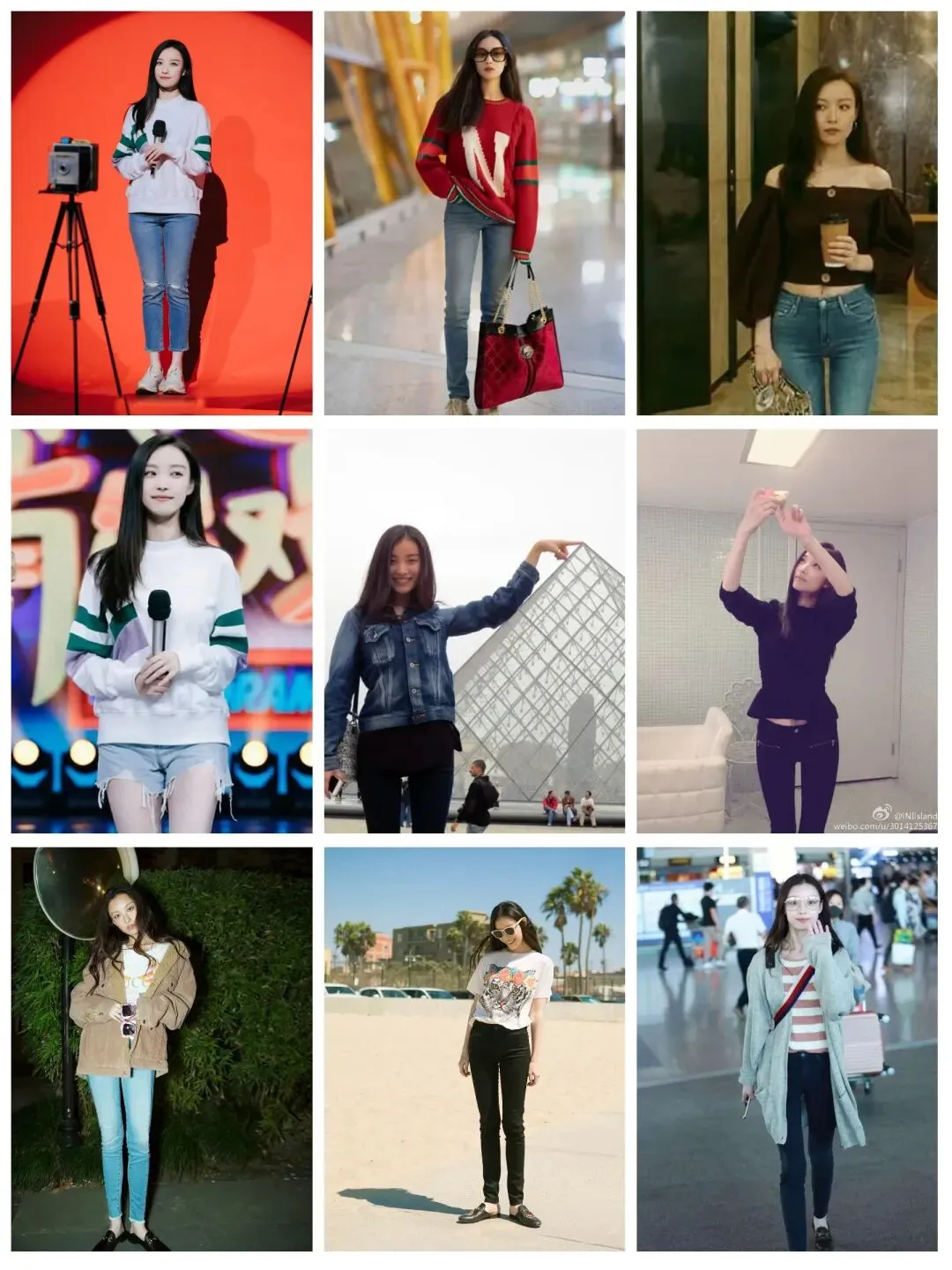 记忆点 9:牛仔裤穿搭|随性高级时尚范本,偏爱高腰牛仔裤搭配,简约 T 恤 / 衬衫打造三七分比例,松弛又精致,被称 “行走的牛仔裤穿搭教科书”。